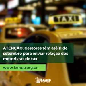 ATENÇÃO: Gestores têm até 11 de setembro para enviar relação dos motoristas de táxi 23 de agosto de 2022