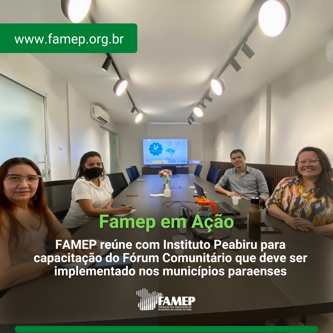 Com o intuito de fortalecer a parceria das entidades a Federação das Associações dos Municípios do Estado do Pará (FAMEP), recebeu nesta terça-feira, 31 de maio, a UNICEF, representado pela Luciana Kellen do Instituto Peabiru, a qual realizou uma Capacitação com técnicos da FAMEP sobre a realização do Fórum Comunitário que deve ser implementado nos municípios paraenses.