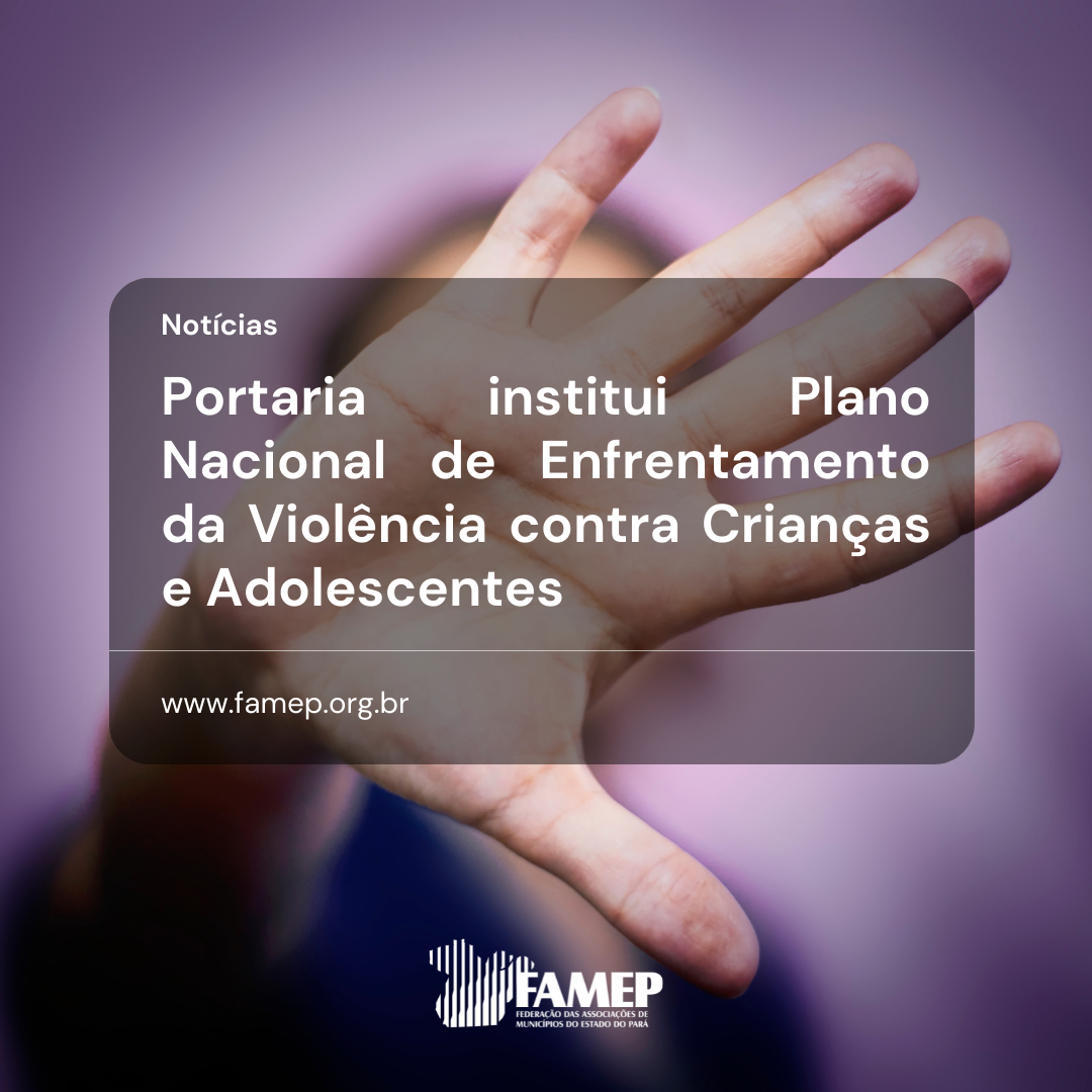 Municípios poderão aderir ao Plano Nacional de Enfrentamento da Violência contra Crianças e Adolescentes (Planevca). A medida foi publicada no Diário Oficial da União desta quarta-feira, 29 de junho. A Federação das Associações de Municípios do Estado do Pará (FAMEP) informa que a Portaria 1235/2022 institui a metodologia de implantação e desenvolvimento dos Centros de Atendimento Integrado para Crianças e Adolescentes vítimas ou testemunhas de violência, além de definir os critérios de adesão.