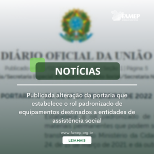 Publicada alteração da portaria que estabelece o rol padronizado de equipamentos destinados a entidades de assistência social 23 de fevereiro de 2022