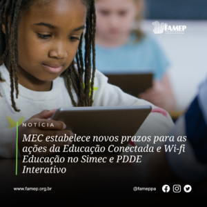 MEC estabelece novos prazos para as ações da Educação Conectada e Wi-fi Educação no Simec e PDDE Interativo 21 de outubro de 2022