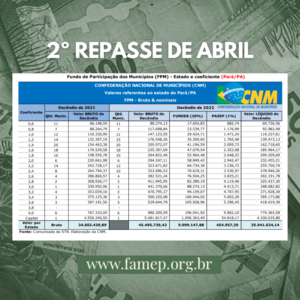 Municípios Paraenses devem receber R$ 469 mi de repasse extra do FPM em 2022; indica CNM 27 de abril de 2022
