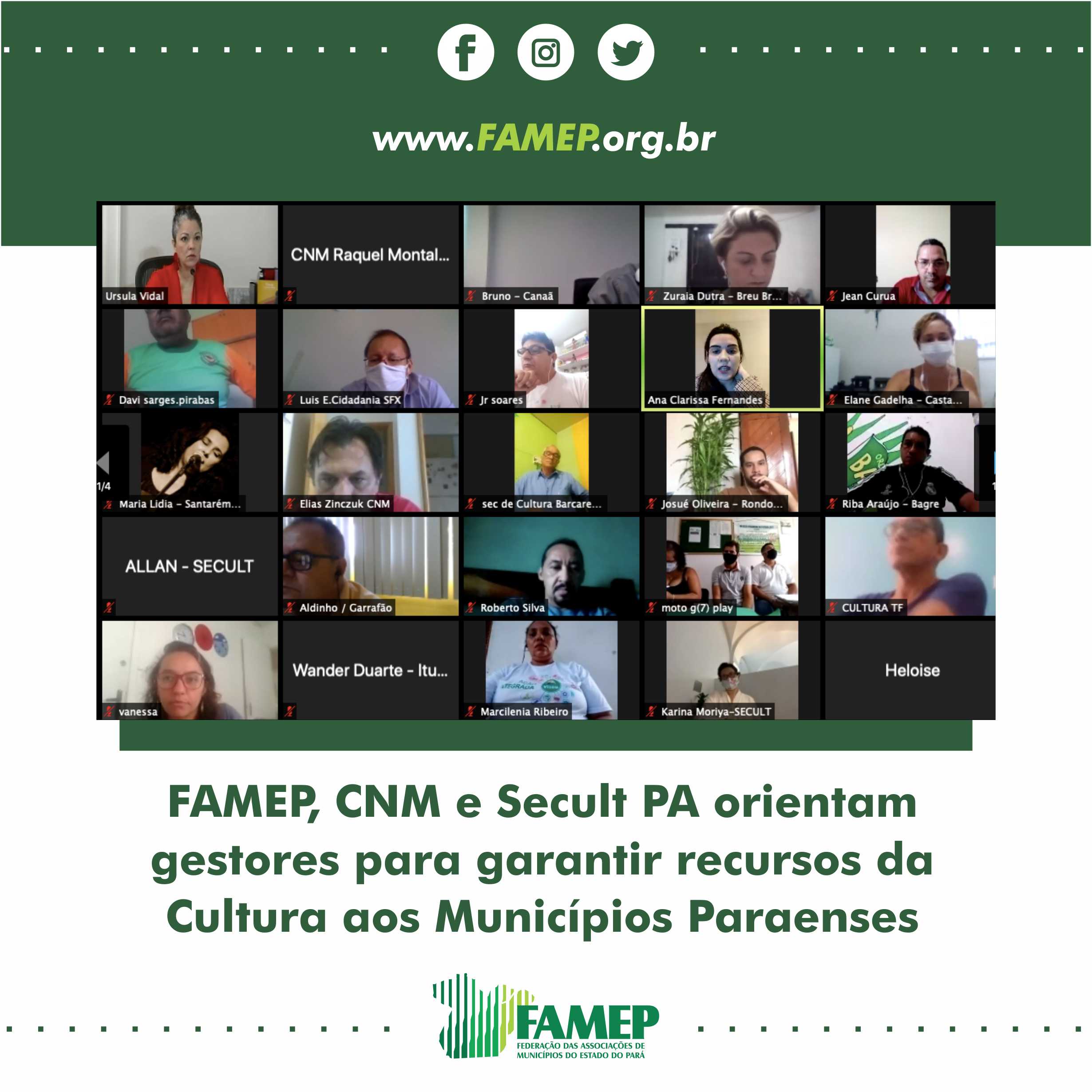 FAMEP, CNM e Secult PA orientam gestores para garantir recursos da Cultura aos Municípios Paraenses 4 de junho de 2020
