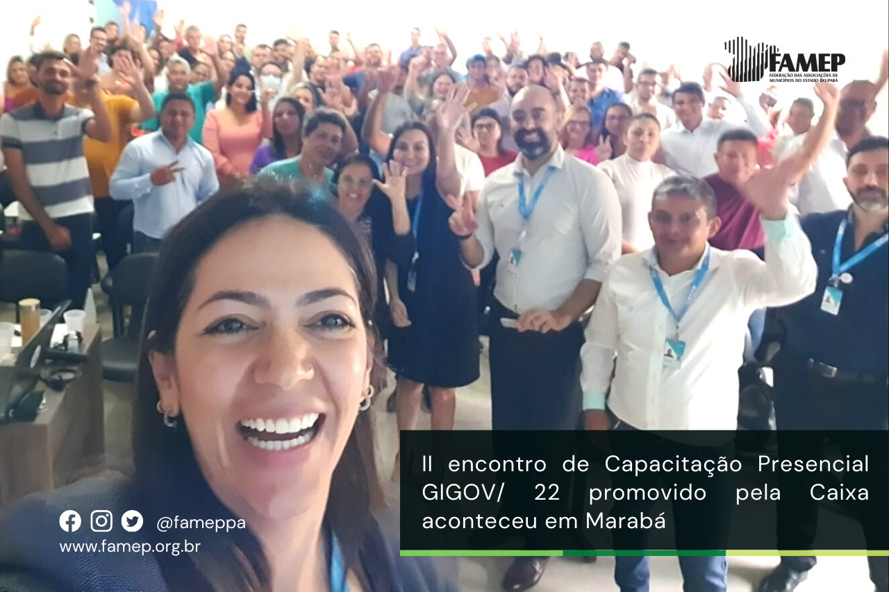 A Caixa Econômica Federal com apoio da Federação das Associações de Municípios do Estado do Pará (FAMEP) e demais Associações e Consórcios regionais, promoveu nesta terça-feira, 14 de junho, o II Encontro de Capacitação Presencial GIGOV/22, no município de Marabá. Estiveram presentes os técnicos da Associação dos Municípios do Araguaia Tocantins (Amat Carajás), Andiara Pires e Ywandro Santos dando apoio no evento recebendo toda equipe da Caixa Econômica.