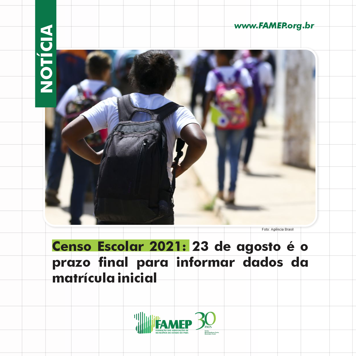 A Confederação Nacional de Municípios (CNM) e a Federação das Associações de Municípios do Estado do Pará (FAMEP) alertam que o prazo para os gestores e diretores das instituições de ensino públicas e privadas de educação básica registrarem os dados educacionais ao Censo Escolar da Educação Básica 2021 no sistema Educacenso termina no dia 23 de agosto.
