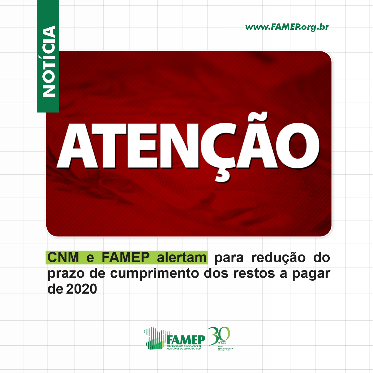 CNM e FAMEP alertam para redução do prazo de cumprimento dos restos a pagar de 2020