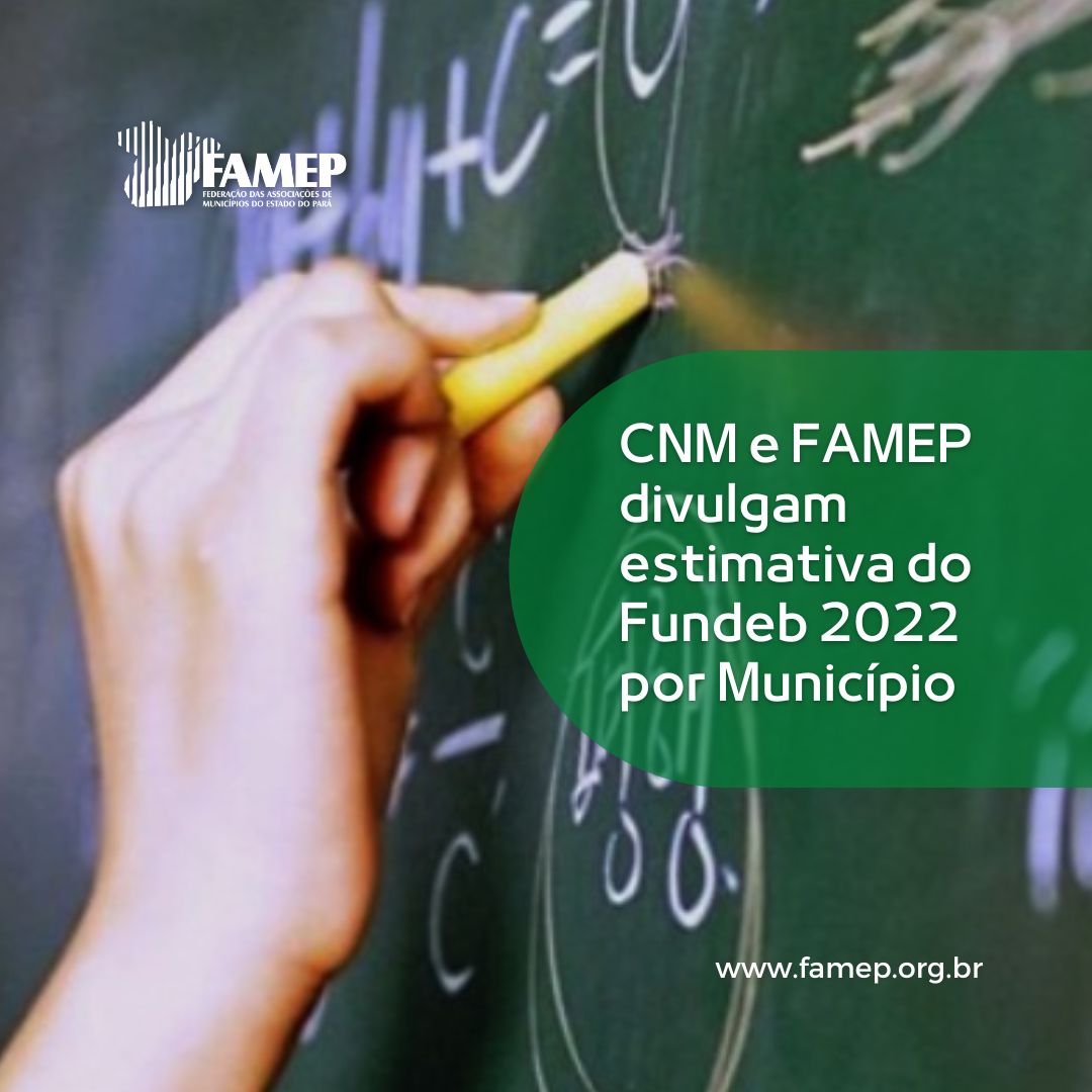 Publicada no Diário Oficial da União (DOU) do dia 30 de agosto, a Portaria Interministerial 4/2022, dos Ministérios da Educação e da Economia, divulgou as novas estimativas anuais das receitas do Fundo de Manutenção e Desenvolvimento da Educação Básica e de Valorização dos Profissionais da Educação (Fundeb) para o exercício de 2022. Com o objetivo de auxiliar e informar os gestores locais, a Confederação Nacional de Municípios (CNM) e a Federação das Associações de Municípios do Estado do Pará (FAMEP) divulgam a nova estimativa por Município Paraense.