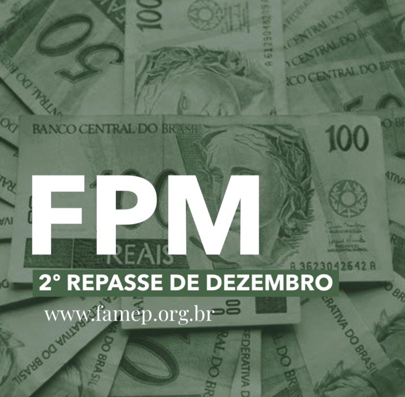 A Confederação Nacional de Municípios (CNM) e a Federação das Associações de Municípios do Estado do Pará (FAMEP) informam que será creditado nesta sexta-feira, 18 de dezembro, o repasse do Fundo de Participação dos Municípios (FPM) referente ao 2º decêndio do mês, no valor de R$ 40.227.585,90, já descontada a retenção do Fundo de Manutenção e Desenvolvimento da Educação Básica e de Valorização dos Profissionais da Educação (Fundeb). Em valores brutos, incluindo o Fundeb, o montante é de R$ 62.855.602,97.