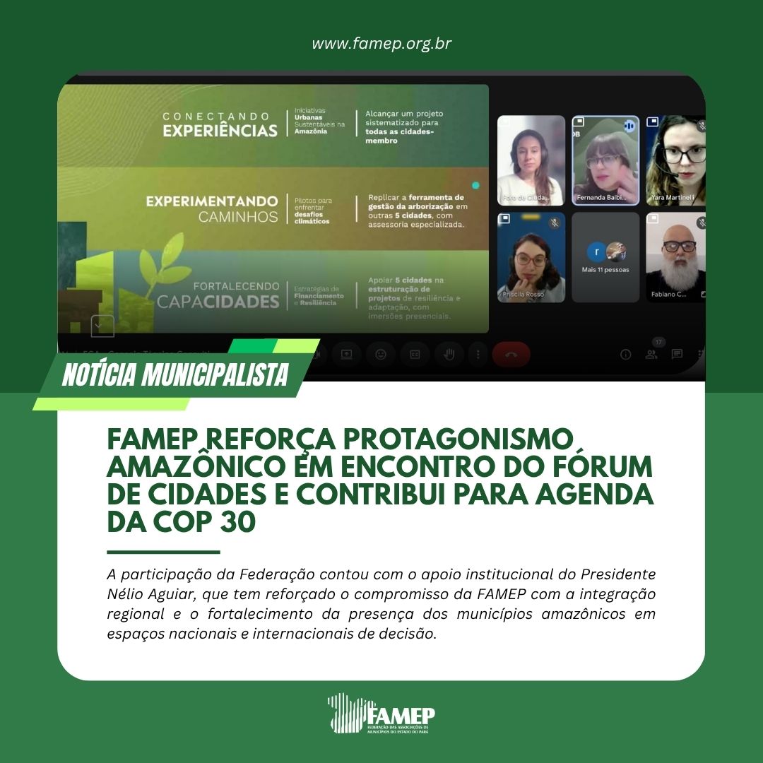 A Federação das Associações dos Municípios do Estado do Pará (FAMEP) marcou presença de destaque na reunião do Conselho Técnico Consultivo do Fórum de Cidades Amazônicas, consolidando seu papel de liderança regional nas pautas de sustentabilidade, inovação e governança municipal.