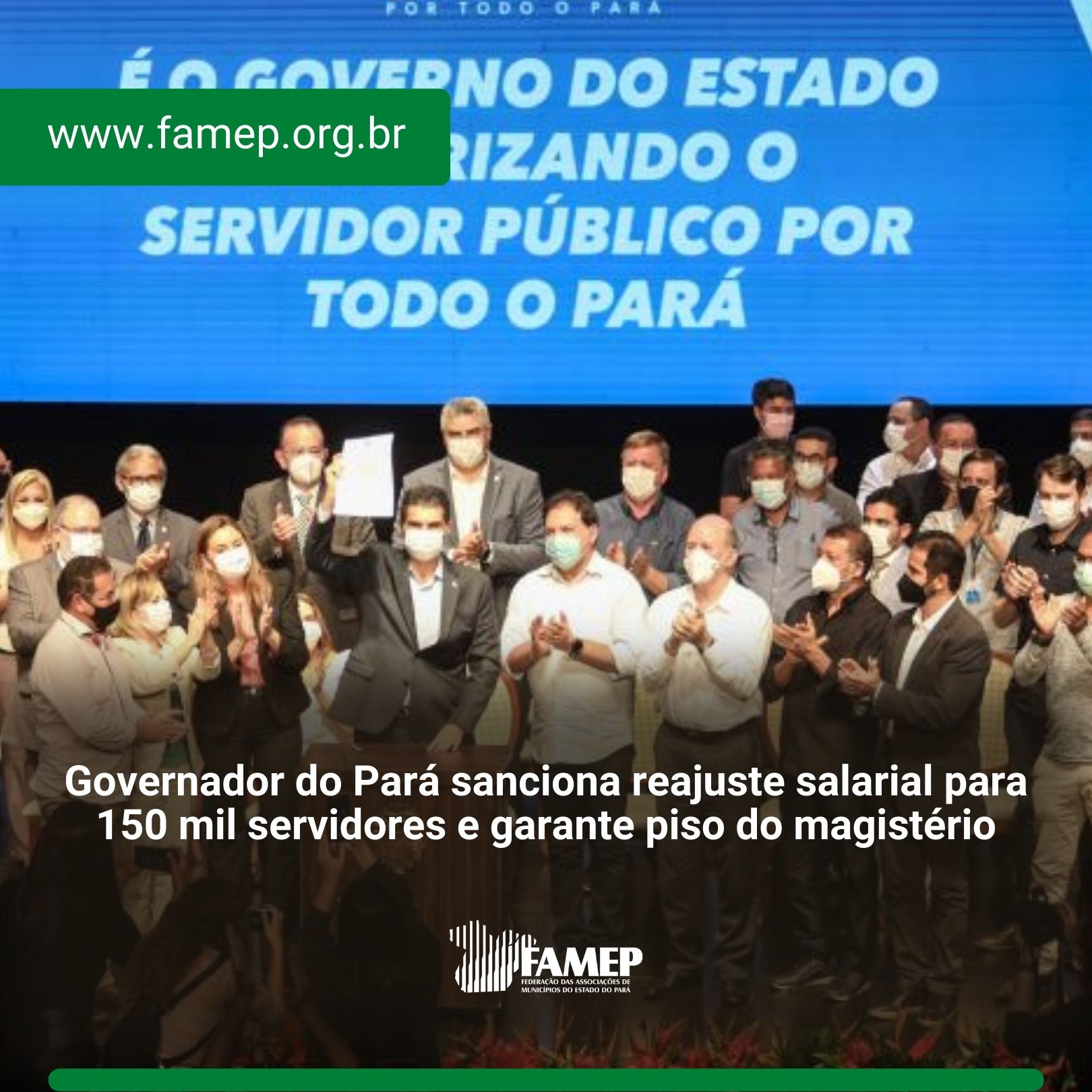 O governador Helder Barbalho sancionou nesta segunda-feira, 28 de março, a lei que concede o reajuste salarial de 10,5% para 150 mil servidores públicos ativos, inativos e pensionistas. O ato ocorreu no Teatro Margarida Schivasappa, em Belém. Também foi sancionada a lei que concede o reajuste de 33,24%, referente ao piso do magistério, assim como o reajuste para membros e servidores da Defensoria Pública (DPE) e Ministério Público do Estado do Pará (MPPA).