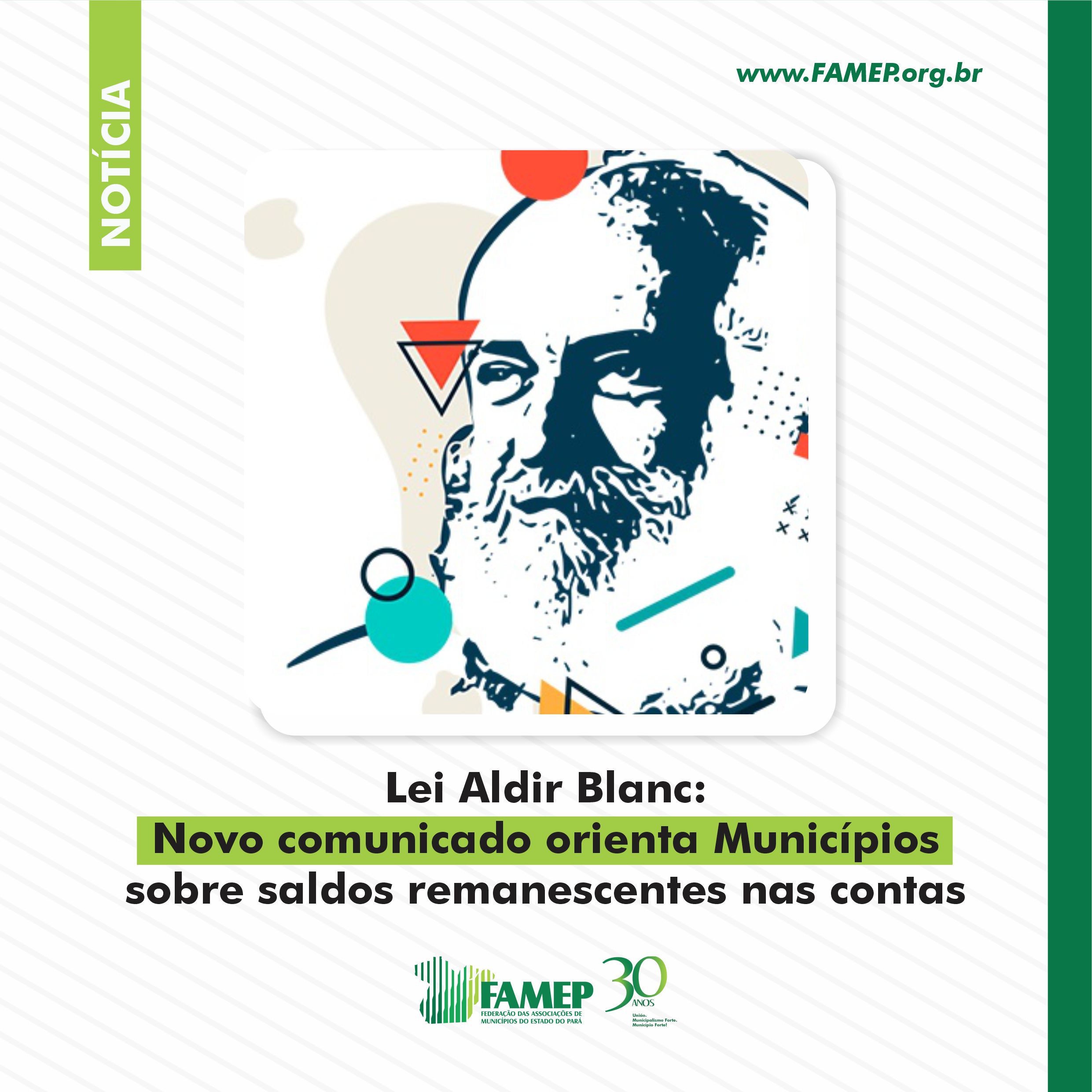A Confederação Nacional de Municípios (CNM) e a Federação das Associações de Municípios do Estado do Pará (FAMEP) lembram que o Decreto 10.464/2020 regulamentou, em agosto, a Lei 14.017/2020 e esclarece que a regulamentação da Lei Aldir Blanc será atualizada. Isso porque, na última sexta-feira, 11 de junho, ocorreu a promulgação de trechos da Lei 14.150/2021, que garantiram aos Municípios a autorização para utilizarem, até 31 de dezembro de 2021, os saldos remanescentes que estão nas contas bancárias.