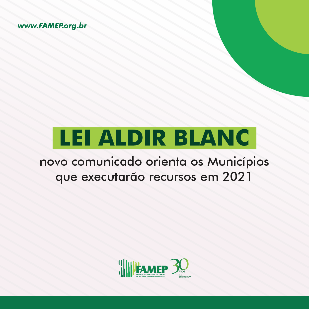 Lei Aldir Blanc: novo comunicado orienta os Municípios que executarão recursos em 2021