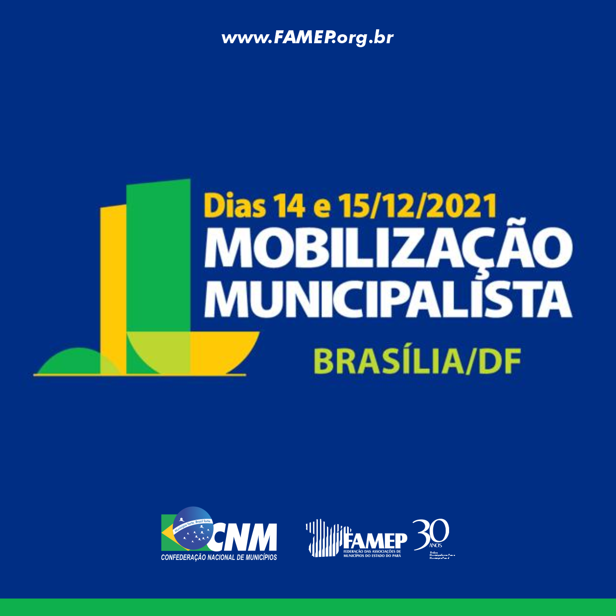 Na luta pela aprovação de pautas prioritárias para os Municípios brasileiros, a Confederação Nacional de Municípios (CNM) com apoio da Federação das Associações de Municípios do Estado do Pará (FAMEP) e das Associações e Consórcios Regionais, convocam os gestores para a Mobilização Municipalista em 14 e 15 de dezembro em Brasília.
