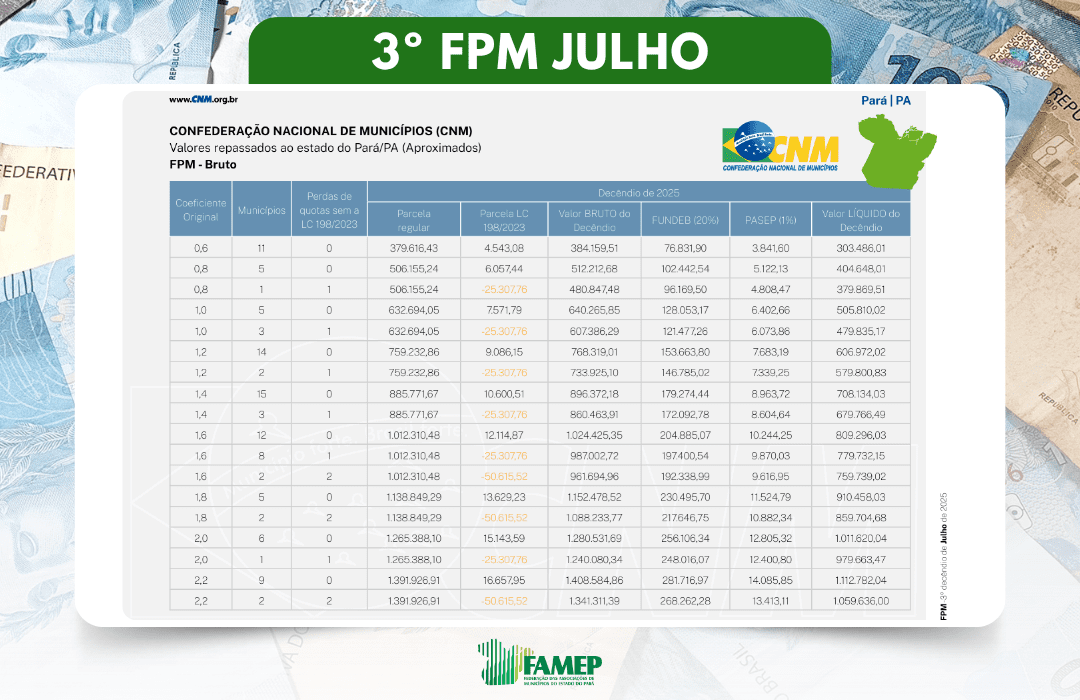 A Confederação Nacional de Municípios (CNM) e Federação das Associações de Municípios do Estado do Pará (FAMEP) reforçam o pedido de cautela por parte dos gestores municipais, especialmente em relação ao mês de julho. Este período é historicamente marcado por reduções na arrecadação devido à sazonalidade e aos níveis de atividade econômica.