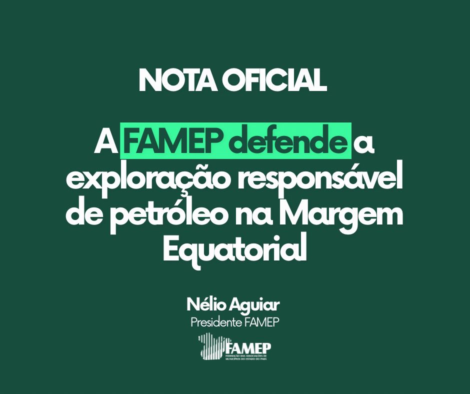 A Federação das Associações de Municípios do Estado do Pará (FAMEP) manifesta seu apoio à exploração responsável e sustentável de petróleo a 500 km da foz do Rio Amazonas, destacando que a iniciativa representa uma oportunidade de desenvolvimento para a região Norte e para o Brasil, sem abrir mão do compromisso com a proteção ambiental.