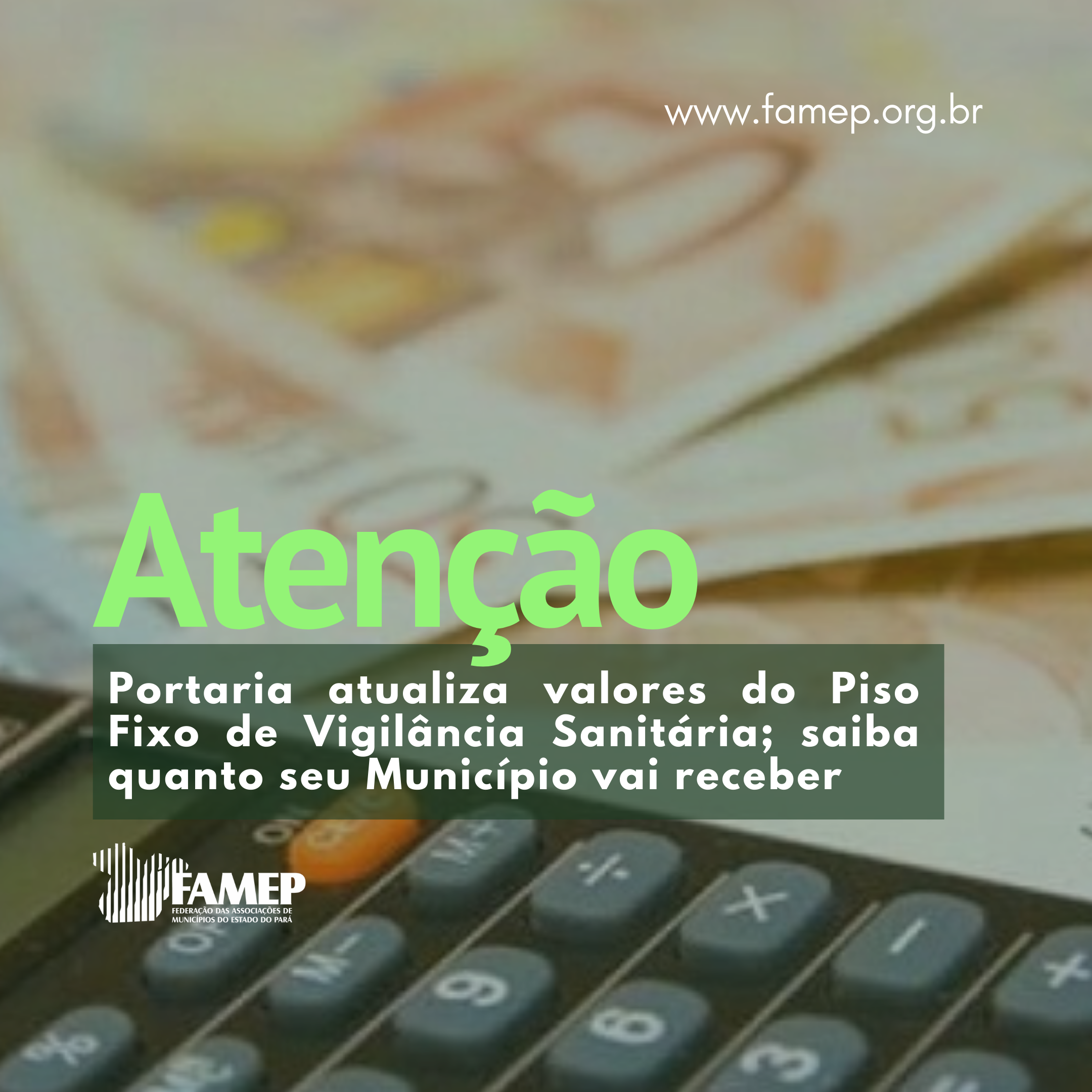 Diante disso, a Federação dos Municípios do Estado do Pará destaca as informações relevantes ao estado do Pará com base nos dados da Confederação Nacional de Municípios (CNM) que apresenta o cálculo do PFVisa, levando em consideração o valor per capita para: