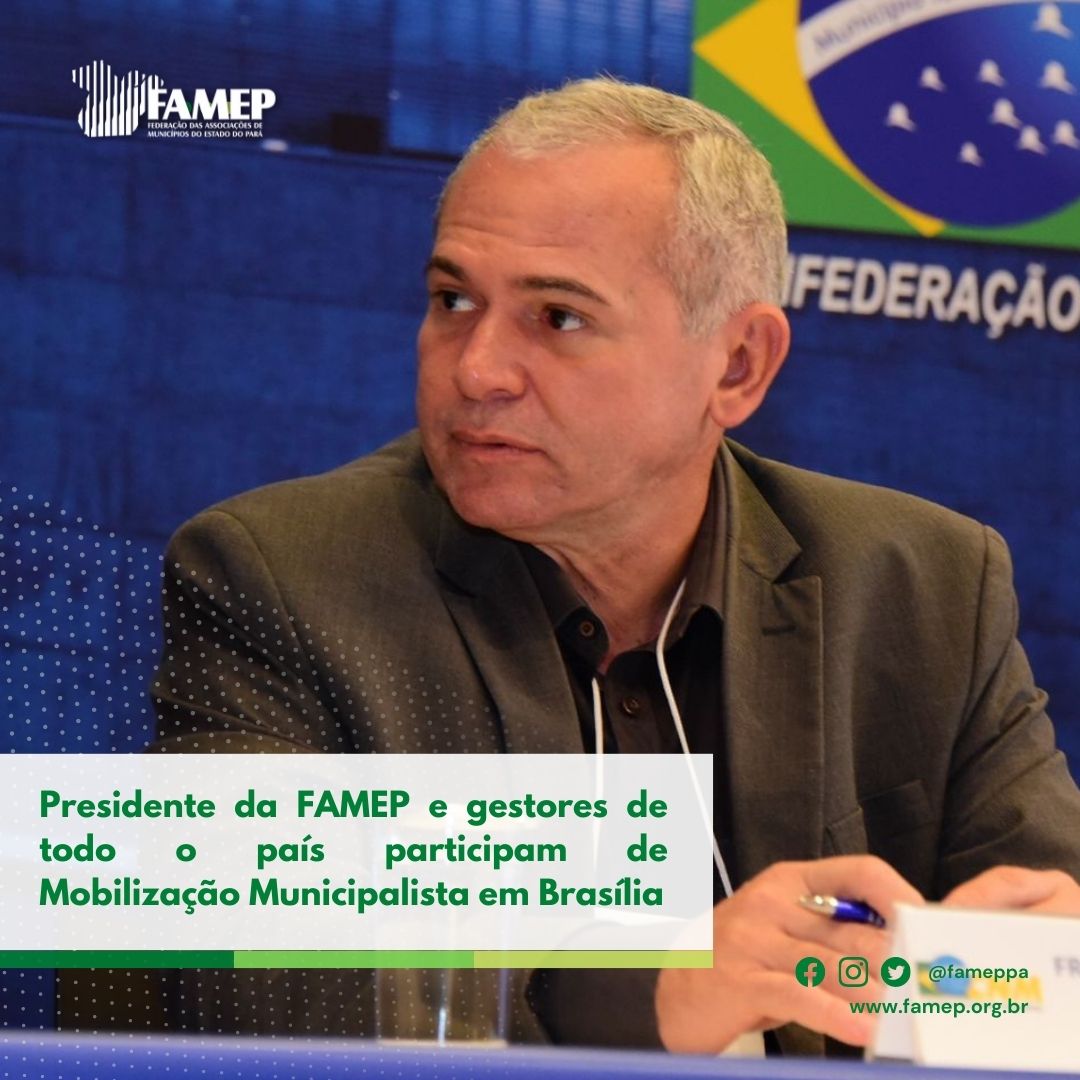 O presidente da Federação das Associações de Municípios do Estado do Pará (FAMEP) e prefeito de Santarém, Nélio Aguiar, participa ao lado de gestores municipais do Pará e de todo o país da Mobilização Municipalista que acontece na sede da Confederação Nacional de Municípios (CNM) na manhã desta terça-feira, 5 de julho. O objetivo da Mobilização é defender a pauta municipalista. Isso porque, dezenas de medidas federais, dos Três Poderes, aumentam as despesas das gestões locais e reduzem receitas, gerando impacto de mais de R$ 73 bilhões ao ano.