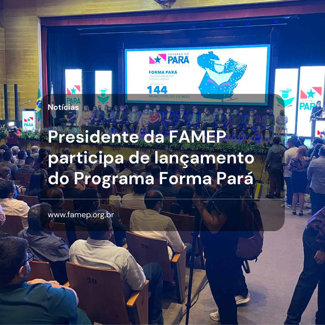 O Governo do Pará vai promover a universalização do ensino superior nos 144 municípios do estado com o lançamento da nova chamada do programa Forma Pará, nesta segunda feira, 7 de março, a importante cerimônia contou com a participação do presidente da Federação das Associações De Municípios do Estado do Pará (FAMEP) e prefeito de Santarém, Nélio Aguiar e demais prefeitos e autoridades políticas.