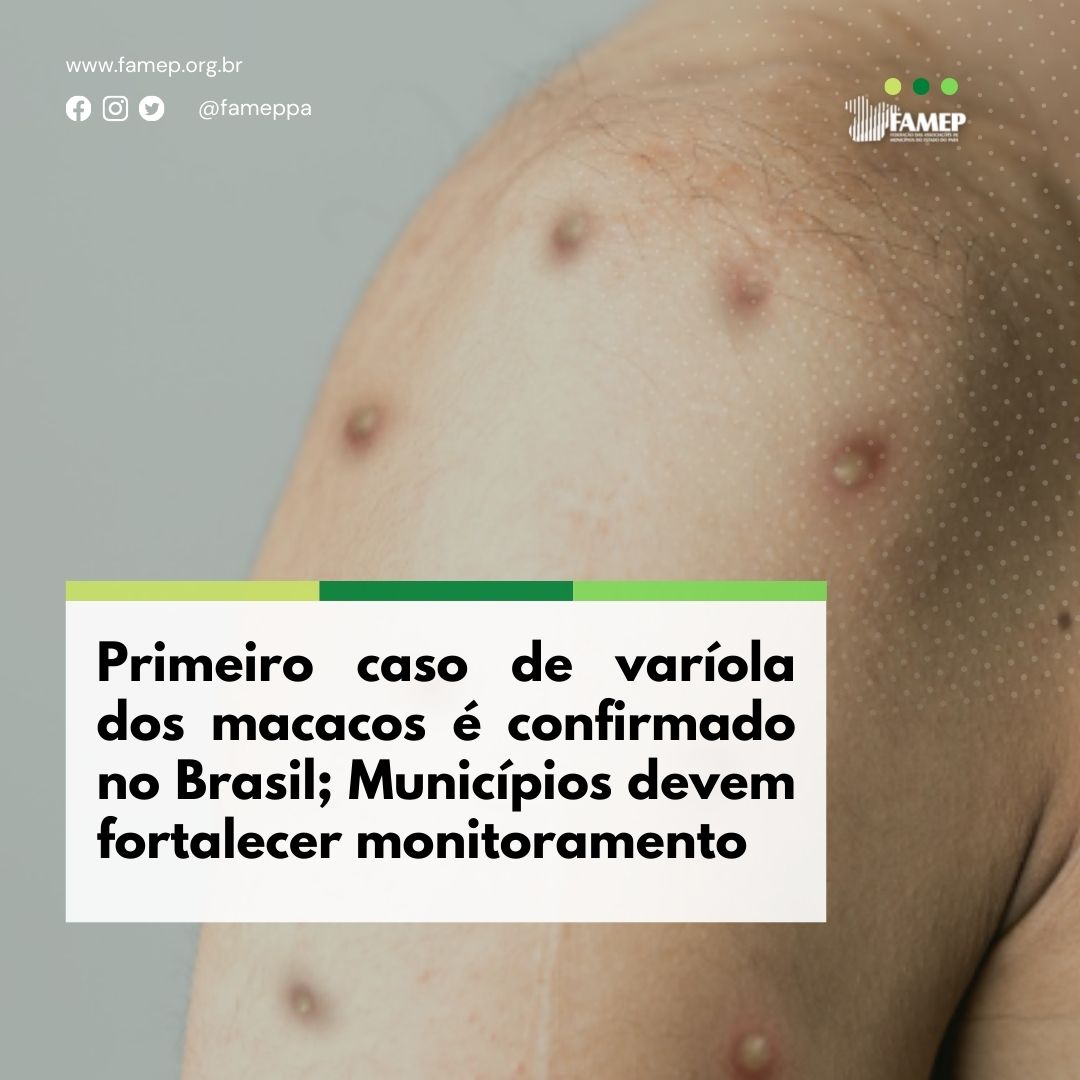 O primeiro caso da chamada varíola dos macacos no Brasil foi confirmado nesta quarta-feira, 8 de junho. O paciente encontra-se internado no Hospital Emílio Ribas, em São Paulo. A Confederação Nacional de Municípios (CNM) e a Federação das Associações de Municípios do Estado do Pará (FAMEP) alertam os gestores locais para a importância de fortalecer a Vigilância em Saúde nos Municípios, o monitoramento e a detecção de casos suspeitos da doença.