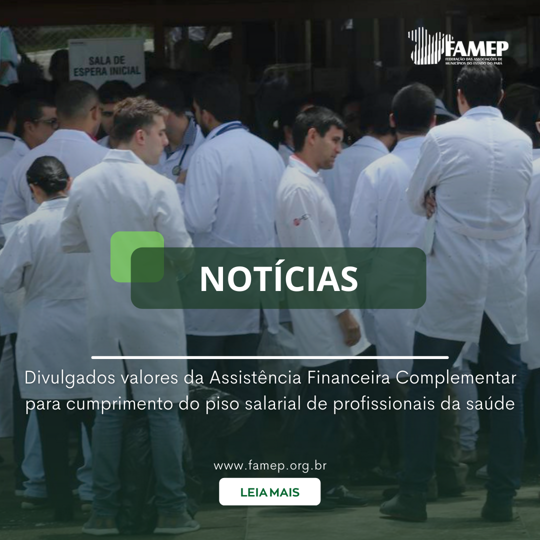 Os recursos anuais disponibilizados pela União aos Municípios e Distrito Federal relacionados à Assistência Financeira Complementar (AFC) para cumprimento do piso salarial profissional nacional dos Agentes de Combate às Endemias (ACE) e ao Incentivo Financeiro para fortalecimento de políticas afetas à atuação dos ACE (IF) no Grupo de Vigilância em Saúde do Bloco de Manutenção das Ações e Serviços Públicos de Saúde foram divulgados. A Portaria 125/2022, que trata do tema, foi publicada pelo Ministério da Saúde no Diário Oficial da União, desta quarta-feira, 26 de janeiro. A Federação de Municípios do Estado do Pará (FAMEP) destacou no anexo abaixo, os valores e recursos disponibilizados para os municípios paraenses: