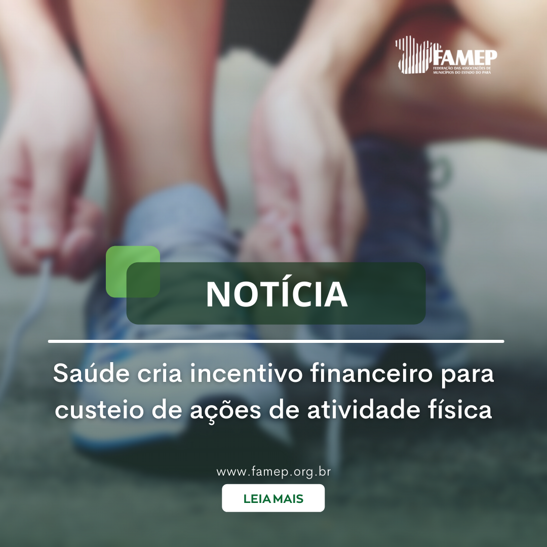 Por meio da Portaria 1.105/2022, o Ministério da Saúde instituiu incentivo financeiro federal destinado à implementação de ações de atividade física na Atenção Primária à Saúde (APS). A Federação das Associações de Municípios do Estado do Pará (FAMEP) ressalta que o texto foi publicado no Diário Oficial da União (DOU) no dia 17 de maio e altera a Seção VII-A, da Portaria de Consolidação GM/MS 6/2017.