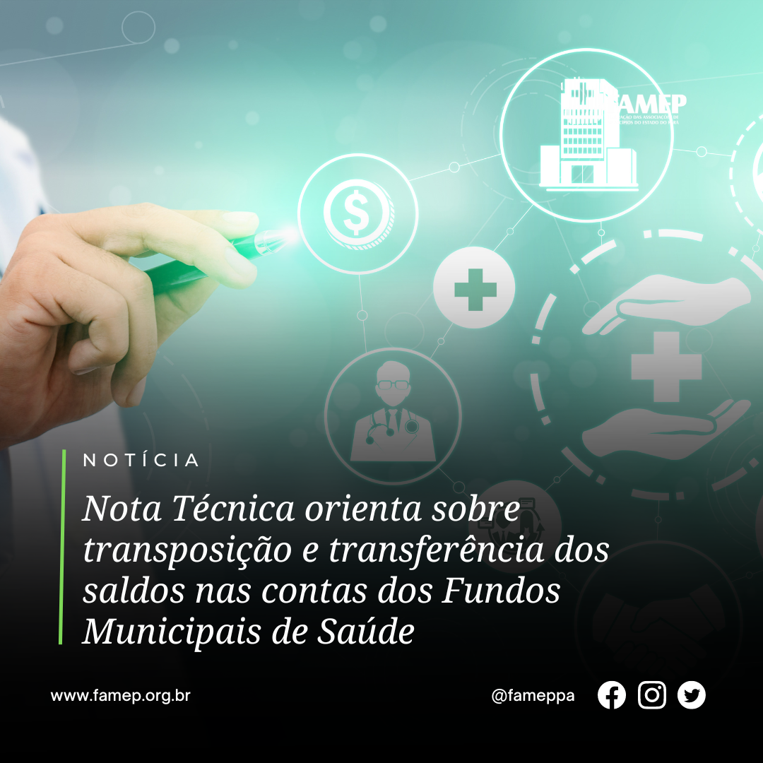 A Federação das Associações de Municípios do Estado do Pará (FAMEP) informa que os gestores municipais têm até o dia 31 de dezembro de 2023 para executar os saldos existentes nas contas da saúde. É o que determina a Portaria 4.830/2022, que regulamenta a Lei Complementar 197/2022 e define as regras para transposição e transferência dos saldos financeiros remanescentes de exercícios anteriores a 2018, constantes nos Fundos Municipais, Estaduais e Distrital de Saúde, provenientes de repasses do Ministério da Saúde.