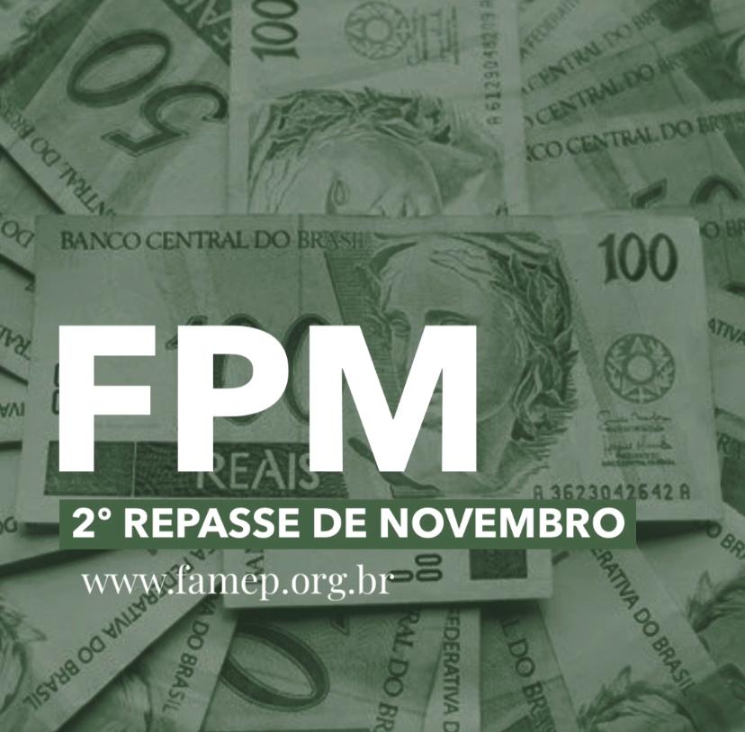 A Federação das Associações de Municípios do Estado do Pará (FAMEP) informa que a segunda parcela do Fundo de Participação dos Municípios (FPM) será transferida aos cofres das prefeituras paraenses nesta sexta-feira, 20 de novembro. De acordo com dados da Secretaria do Tesouro Nacional (STN), o valor será de R$ 22.788.684,72, com o desconto constitucional de 20% para o Fundo de Manutenção e Desenvolvimento da Educação Básica e de Valorização dos Profissionais da Educação (Fundeb).