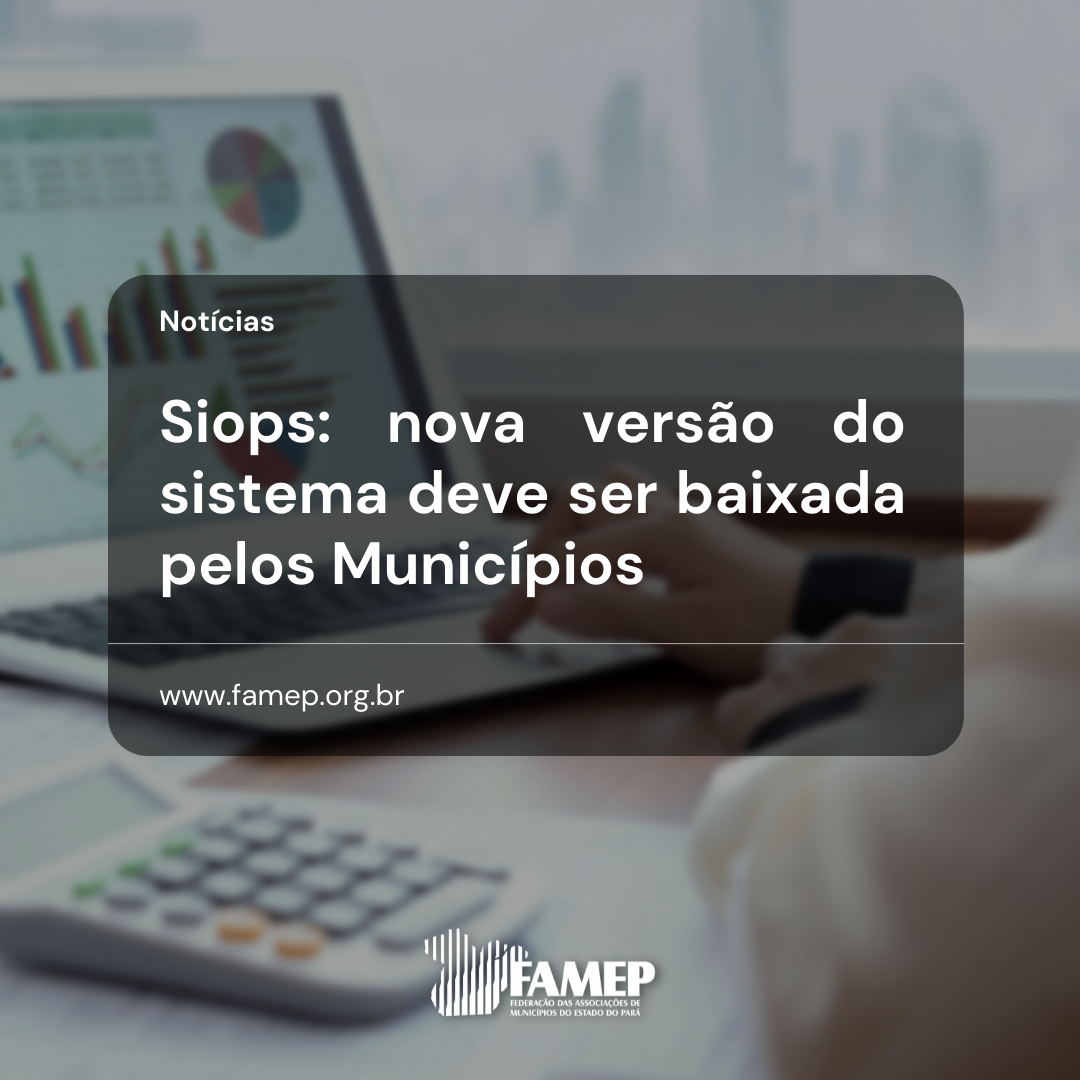 A Federação das Associações de Municípios do Estado do Pará (FAMEP) informa que as prefeituras devem baixar a nova versão do Sistema de Informações sobre Orçamentos Públicos em Saúde (Siops) e o arquivo de estrutura, necessário ao preenchimento dos dados referentes ao primeiro bimestre de 2022. A recomendação é que a atualização disponível pelo Ministério da Saúde seja feita pelos gestores antes de iniciar a transmissão de dados deste ano.