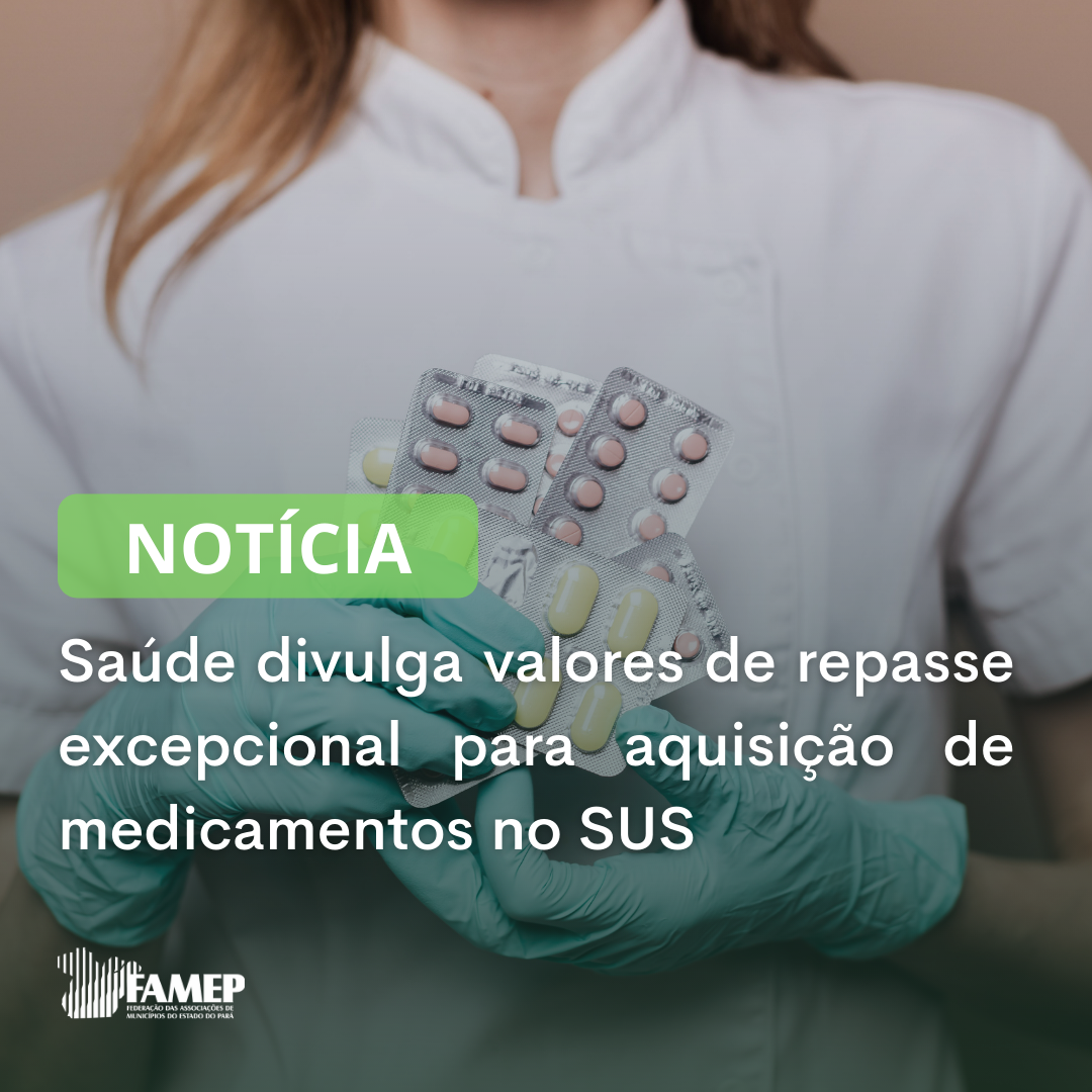 O Ministério da Saúde publicou a Portaria 371/2022, divulgando os repasses de recursos do incremento excepcional ao financiamento federal do Componente Básico da Assistência Farmacêutica do Sistema Único de Saúde (SUS). A Federação das Associações de Municípios do Estado do Pará (FAMEP) informa que os Municípios receberão em 13 parcelas, referentes a dezembro de 2021 e às doze competências de 2022. Os detalhes do repasse para os municípios do Pará estão no anexo abaixo, publicada no Diário Oficial da União desta quarta-feira, 23 de fevereiro.