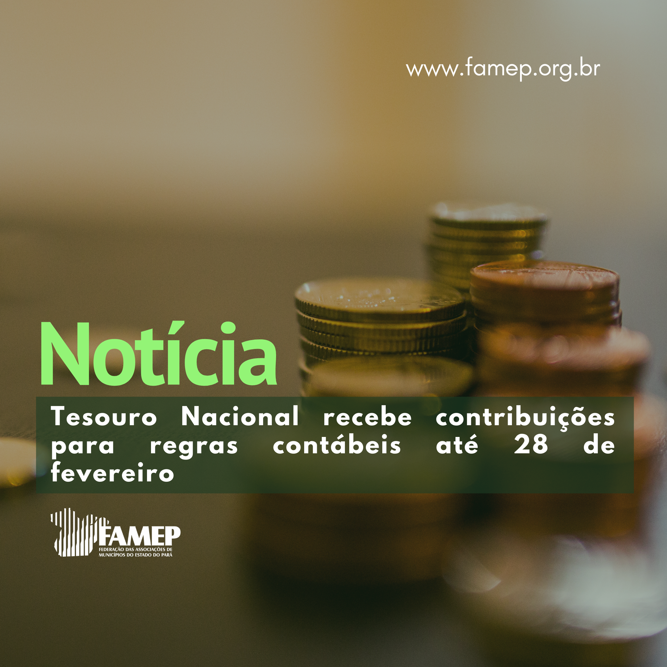 A Secretaria do Tesouro Nacional abriu prazo até dia 28 de fevereiro para contribuições referentes à normatização de regras contábeis que serão aplicadas em 2023. A Federação das Associações de Municípios do Estado do Pará (FAMEP) informa que podem ser enviadas sugestões para o Plano de Contas Aplicado ao Setor Público (PCASP), o Ementário da Classificação por Natureza da Receita Orçamentária e a Classificação por Fonte ou Destinação de Recursos para o exercício de 2023.
