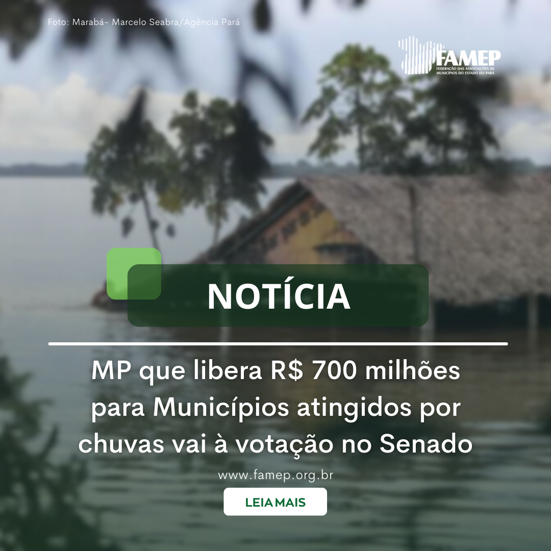 O Senado deve votar nos próximos dias a Medida Provisória (MP) 1.092/2021, que destina R$ 700 milhões aos Municípios atingidos pelas chuvas em dezembro e janeiro, em especial na Bahia e em Minas Gerais. A Federação das Associações de Municípios do Estado do Pará (FAMEP) explica que os recursos, em favor do Ministério da Cidadania, são para o atendimento das despesas de distribuição de alimentos para pessoas desabrigadas ou desalojadas em decorrência das recentes fortes chuvas e para estrutura da rede de serviços do Sistema Único de Assistência Social (Suas).