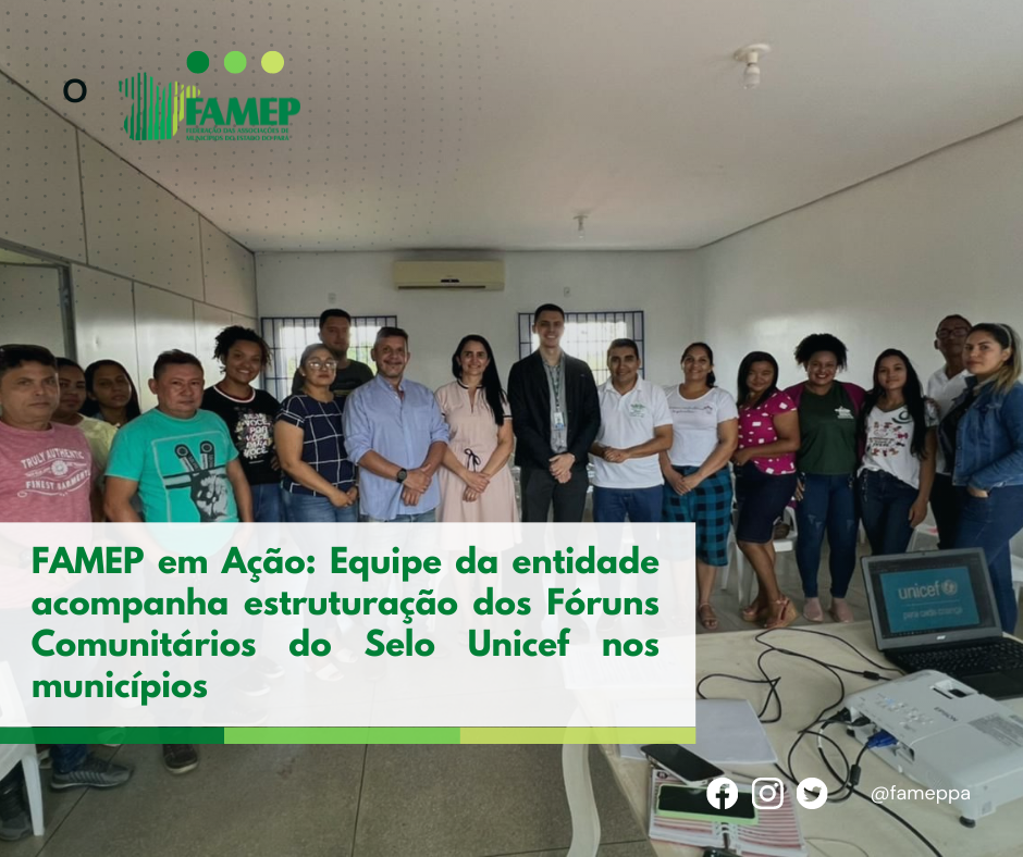 Em parceria com o Instituto Peabiru e o Fundo das Nações Unidas para a Infância (Unicef), a equipe da Federação das Associações de Municípios do Estado do Pará (FAMEP) visitou alguns municípios paraenses para acompanhar a estruturação dos Fóruns Comunitários, uma etapa obrigatória para a certificação do Selo Unicef.