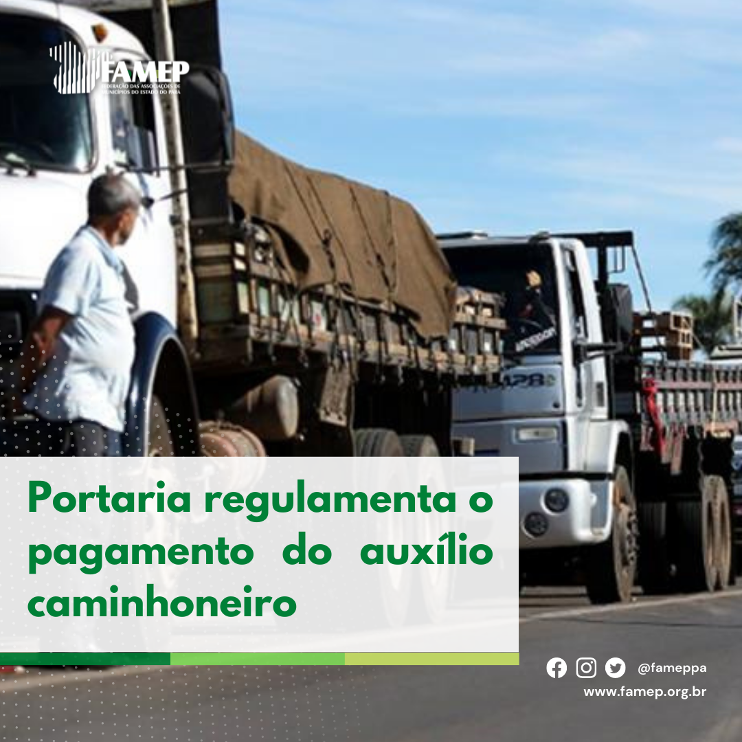 Publicação do Diário Oficial da União (DOU) traz a regulamentação do benefício emergencial devido aos transportadores autônomos de cargas, conhecido como auxílio caminhoneiro. A Portaria 6/2022, publicada na terça-feira, 2 de agosto, reforça que o pagamento do auxílio tem validade até dezembro de 2022 e será pago em seis parcelas mensais, no valor de R$ 1.000,00 (cada). A Federação das Associações de Municípios do Estado do Pará (FAMEP) ressalta que para que possam receber o benefício, os caminhoneiros devem estar devidamente cadastrados no Registro Nacional de Transportadores Rodoviários de Cargas (RNTR-C) até a data de 31 de maio de 2022, observado o limite global de pouco mais de R$ 5 bilhões.