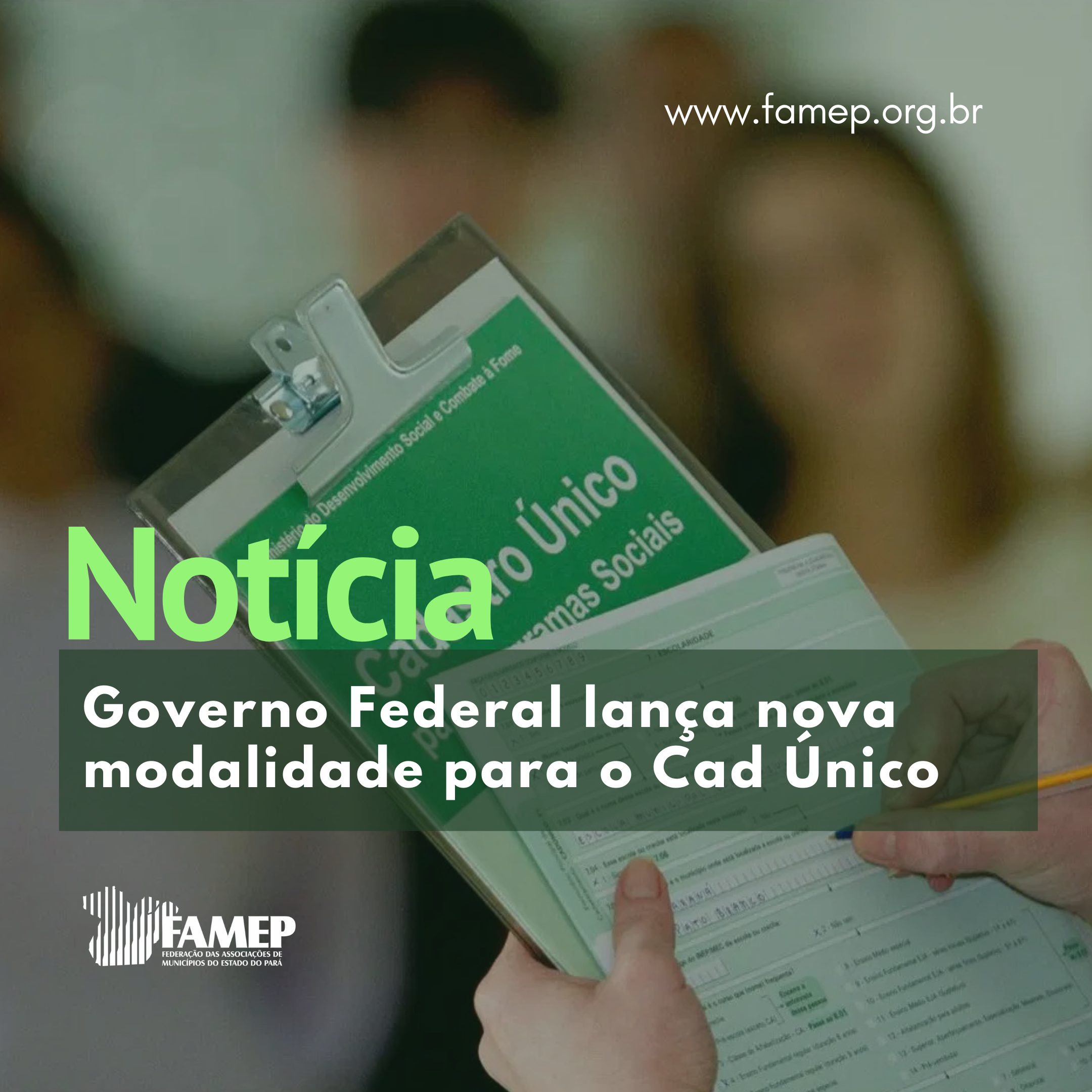 Diário Oficial da União traz publicação do Decreto 11.016/2022, que traz a regulamentação do Cadastro Único (CadUnico), revogando o Decreto 6.135/2007. A Federação das Associações de Municípios do Estado do Pará (FAMEP) explica que o CadÚnico é um instrumento de coleta de dados, processamento, sistematização e disseminação de informações, com a finalidade de realizar a identificação e a caracterização socioeconômica das famílias de baixa renda que residem no território nacional. Esse cadastro é utilizado para acessar diversos programas sociais, dentre eles o Auxílio Brasil.