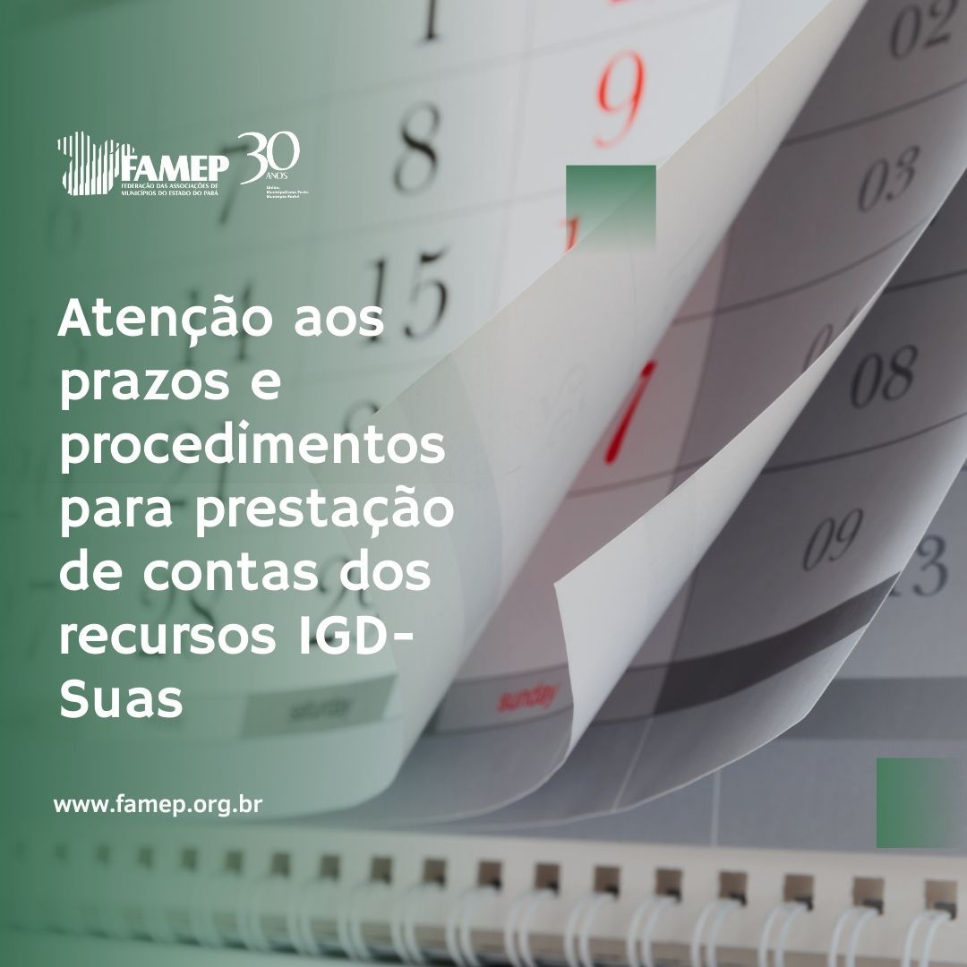 Os prazos e os procedimentos para prestação de contas dos recursos do Índice de Gestão Descentralizada do Programa Bolsa Família (IGD-Suas) em 2020 foram publicados pela Secretaria Nacional de Assistência Social do Ministério da Cidadania (SNAS-MC). A Confederação Nacional de Municípios (CNM) e a Federação das Associações de Municípios do Estado do Pará (FAMEP) chamam atenção dos gestores locais para as medidas trazidas pela Instrução Normativa (IN) 7/2021.
