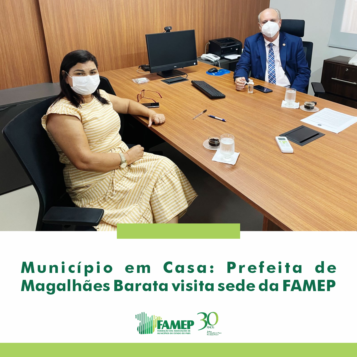 O secretário executivo da Federação das Associações de Municípios do Estado do Pará (FAMEP), Josenir Nascimento, recebeu na manhã desta quinta-feira, 21 de outubro, a prefeita de Magalhães Barata, Marlene da Silva Borges acompanhada de seu esposo Francisco Lobo da Paixão.